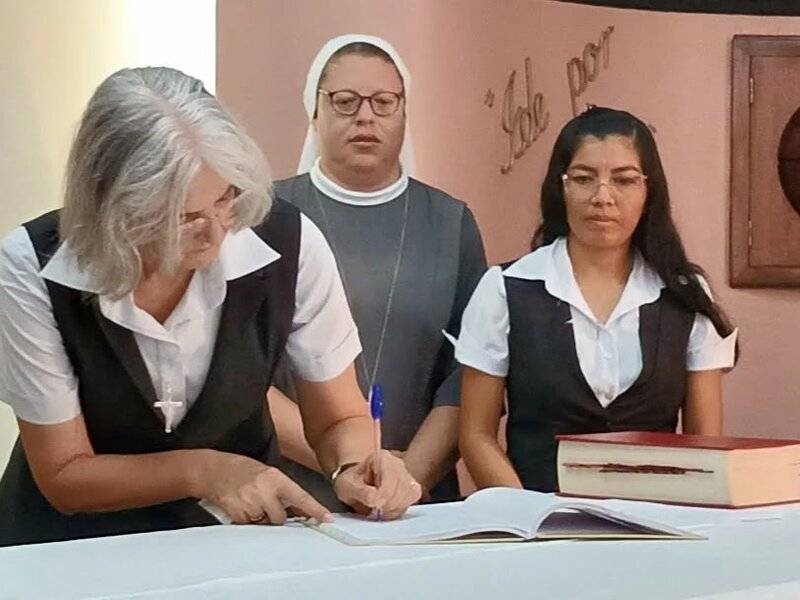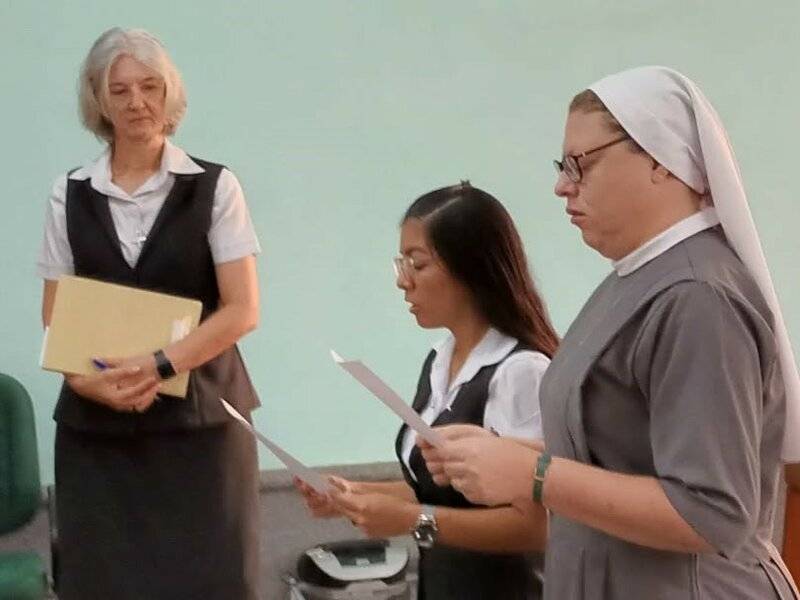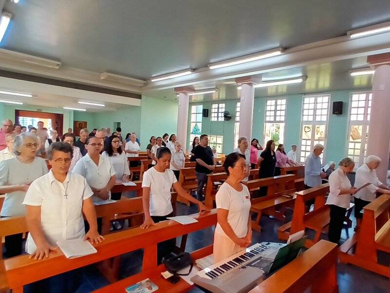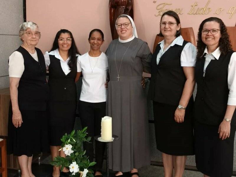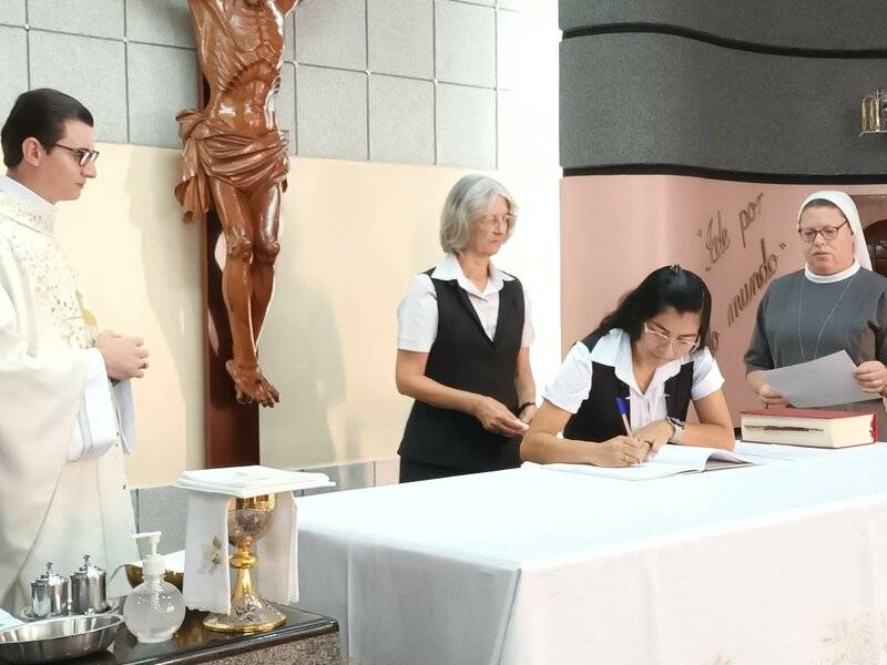 In der Kapelle unseres Exerzitienhauses Rainha da Paz in Maringá legen heute Sr. Kêise Maria und Sr. Kelly Maria erneut ihre zeitlichen Gelübde ab, Sr. Kêise Maria für ein Jahr und Sr. Kelly Maria für drei Jahre.
