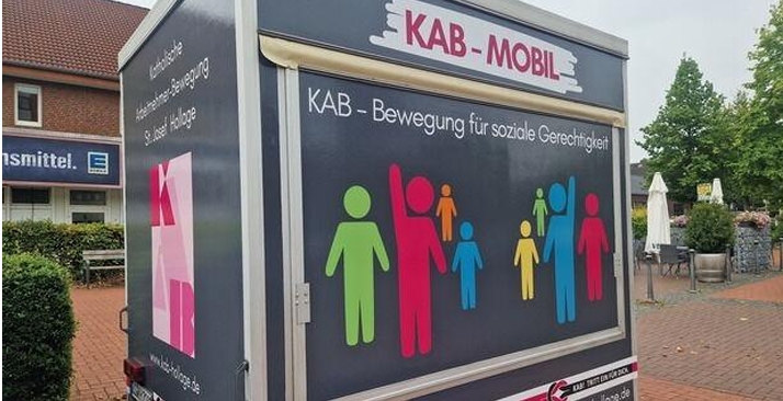 Das KAB Mobil steht jeweils am 1. Freitag im Monat auf dem St Josefs Platz in Hollage.
